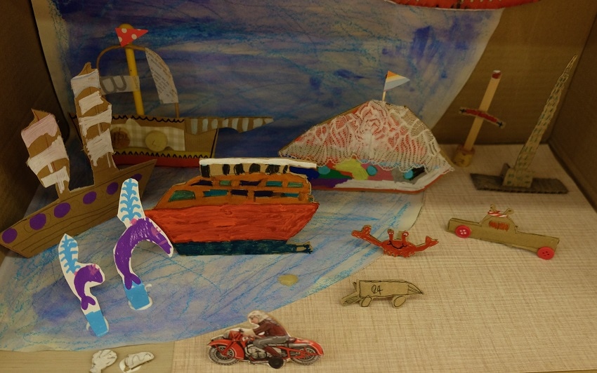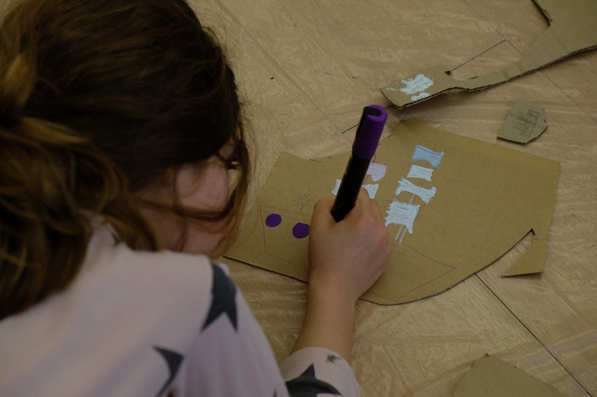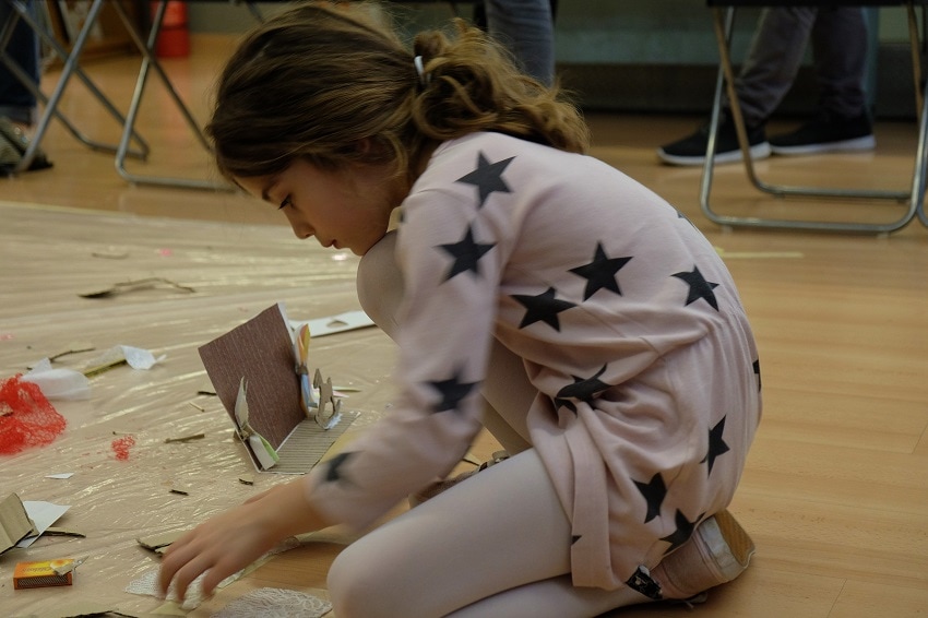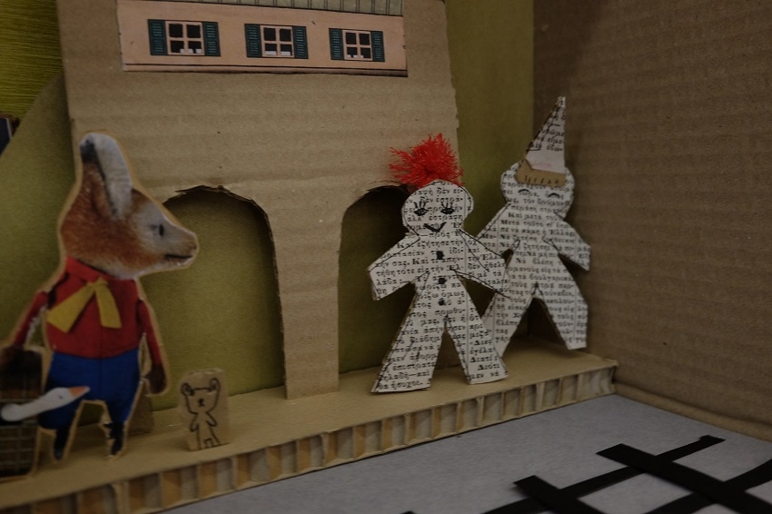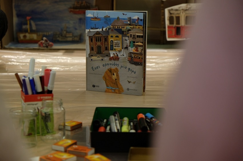 Όλα λοιπόν ήταν στη θέση τους. Κουτιά, δαντέλες, κορδελάκια, ψαλίδια, κόλες, μαρκαδόροι, κέφι και πολλή φαντασία. Το ίδιο και εμείς, που με την καθοδήγηση της Ίριδας Σαμαρτζή, της Ελένης, της Παναγιώτας και πολλών άλλων φίλων κατασκευάσαμε ένα πελώριο παραμυθένιο μουσείο από χαρτί. Και όλα αυτά, ακολουθώντας τα χνάρια της περιπλάνησης του Αρκούδου μέχρι να βρει τελικά το σπίτι του.