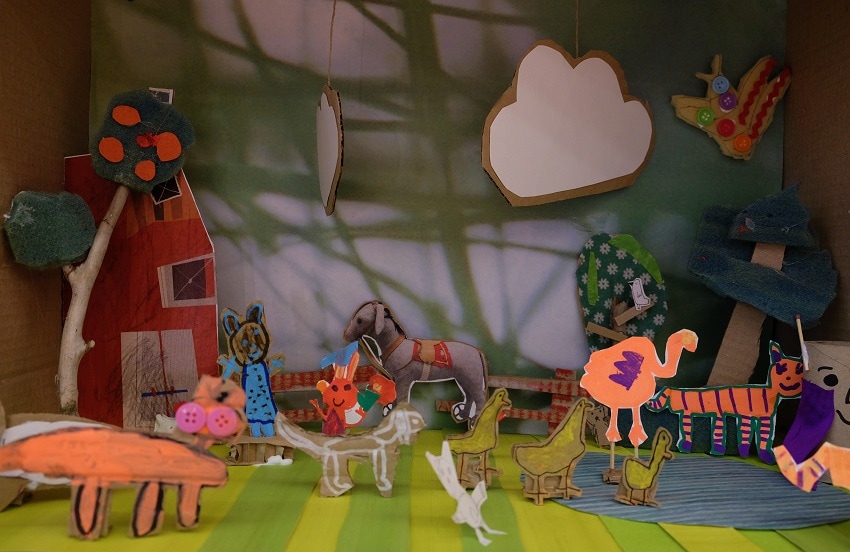 Φτιάξαμε επιβάτες στο σιδηροδρομικό σταθμό, πάπιες και ζώα στο αγρόκτημα, διάφορα καλούδια προς πώληση στο παντοπωλείο, αυτοκίνητα, παιχνίδια για το μουσείο και φυσικά έναν Αρκούδο.