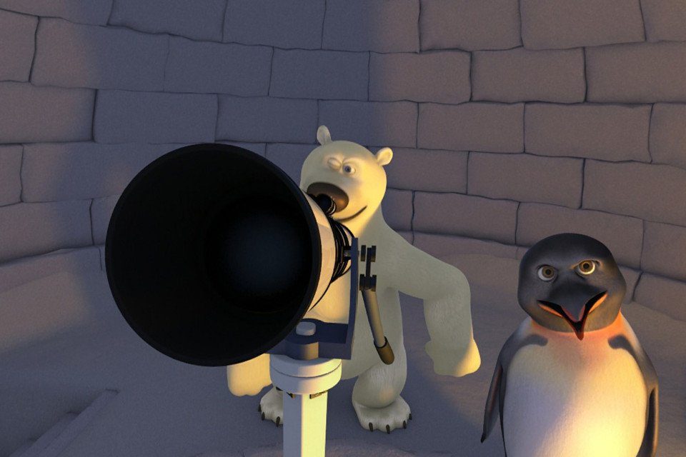 Ο Τζέιμς Χειμέριος, ένας ταξιδιάρης πιγκουίνος από τον Νότιο Πόλο, και ο Βλαδίμηρος Τσέχοφ, ένας φιλικός αρκούδος από τον Βόρειο Πόλο, συναντιούνται στους πάγους της Αρκτικής. Γίνονται φίλοι, συζητούν για τις πατρίδες, τους παρατηρούν τα αστέρια και αναρωτιούνται γιατί οι νύχτες είναι τόσο μεγάλες στους δύο πόλους της Γης! Προσπαθώντας να ξεδιαλύνουν το μυστήριο… χτίζουν ένα αστεροσκοπείο και κατασκευάζουν ένα αυτοσχέδιο διαστημόπλοιο. Κάπως έτσι βρίσκονται να ταξιδεύουν γύρω από τη Γη και από εκεί ως τον Άρη και τον Κρόνο για να πάρουν τις απαντήσεις που ψάχνουν.