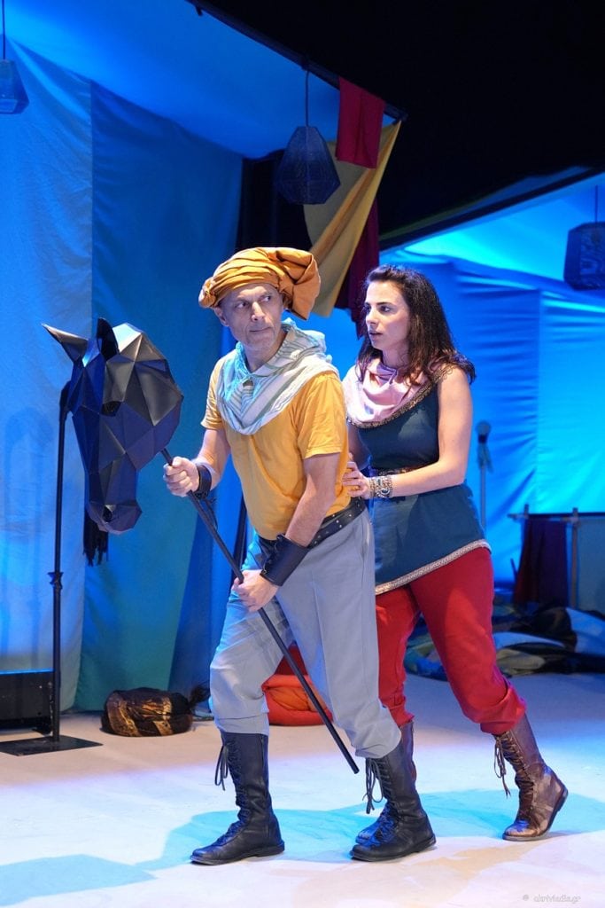 Μια ιστορία από την πένα και τη φαντασία του κρητικού συγγραφέα, ένα ταξίδι στη μαγεία της μακρινής Ανατολής, για παιδιά και μεγάλους. Οι ηθοποιοί ξετυλίγουν το νήμα της ιστορίας, με τη συμμετοχή των μικρών θεατών, φωτίζοντας με τραγούδια και μουσικά όργανα έναν κόσμο γεμάτο βασιλιάδες, πριγκίπισσες, μάγους, δερβίσηδες, πραματευτάδες και καραβάνια.