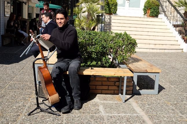 Εγκαταλείψαμε λοιπόν το Starbucks, θρονιαστήκαμε κάτω από τον ήλιο στα ξύλινα παγκάκια του Κέντρου και ακούγοντας τη μουσική του βιολοντσέλου να χαϊδεύει τα αυτιά μας, απολαύσαμε ένα καταπληκτικό παγωτό.